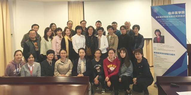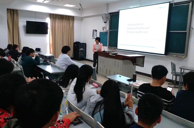 为提高各附属医院及各社区卫生服务中心教师的教学及科研能力,加强临床医学专业学生全科医学理念及医患沟通技能等能力、拓宽国际视野。特邀我校客座教授:墨尔本大学全科医学系Prof.Doris Young来我校对学生和教师进行为期三天的授课、教师培训交流等。