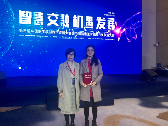12月7日,以“智慧、交融、机遇、发展”为主题的第三届中国医学模拟教学联盟大会暨中国健康医学教育PBL联盟大会在上海三甲港绿地国际会议中心隆重召开,会议的主旨是通过人工智能的医学模拟和PBL交融推进医学教育的改革与探索。我院高艳敏教师获得“十佳模拟教师”奖。