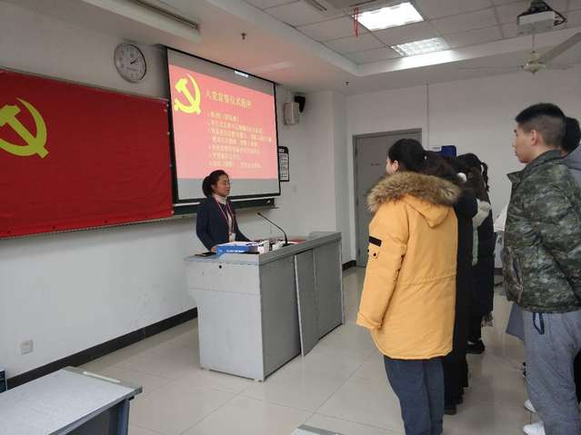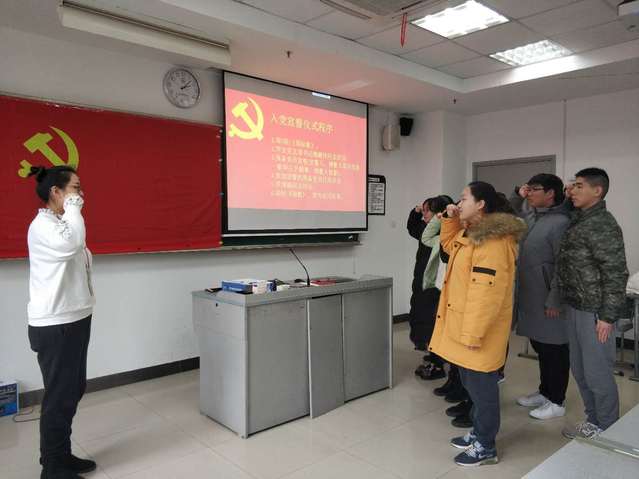 1月14日下午1点在北苑2号楼304教室,我院学生党支部举行了隆重的预备党员入党宣誓仪式。出席仪式的有党总支副书记罗瑾琰、学生党支部书记施毓玲、宣传干事吴单以及9位预备党员和学生党建工作站成员,仪式由施毓玲老师主持。