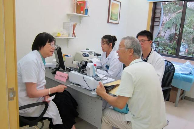 祝墡珠教授(左二)与学生一起进行病例讨论。张欣迪摄
