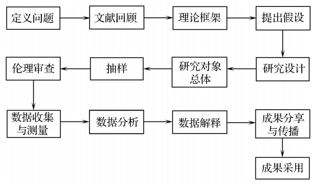 定义或确定研究问题在定性和定量研究中同等重要。如图1所示,研究者首先需要确定所研究的问题,明确说明为什么要进行此问题的研究、 相关领域中还有什么知识空缺需要填补、研究问题的重要性是什么等。研究者要对所研究的问题提出合理的理由。研究者可以结合研究兴趣,对初步确定的问题进行逻辑推理上的相关讨论,并进而确定研究问题。细致的问题研究有助于寻求解决方案。值得注意的是,一些研究者常常陈述的是研究的目的,而不是说明要研究的问题。