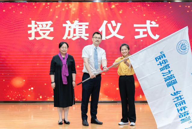 7月13日在喀什地区第二人民医院举行了“医学智力援疆—乡村医生培训”项目启动授旗仪式,教务处处长王莉向附属喀什二院陈天翔副院长和罗瑾琰授旗,标志“喀什地区乡村医生基层适宜技术师资培训及大学生暑期社会实践项目”落地开展。