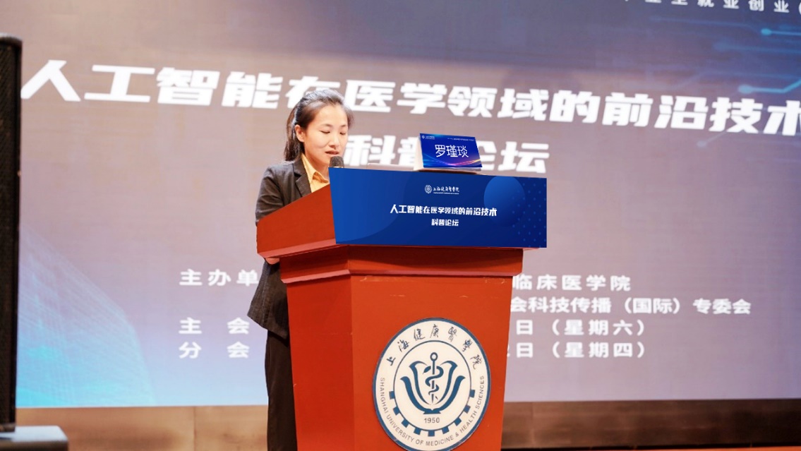 首先,唐红梅对本次论坛致辞。她表示,人工智能已成为推动科技发展的重要力量,其在医学领域的应用更是备受瞩目。从辅助诊断、治疗到健康管理,人工智能正在深刻改变我们的医疗方式和生活质量。希望通过本次科普论坛,以具体实例分享如何构建适合市场需求的医工理交叉创新创业项目,推动学生创新项目的产业转化,从而促进学生就业。