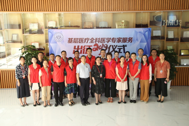 出征仪式现场,郑沈芳书记及沈国芳副校长为“基层医疗全科医学专家服务项目”团队、“临床服务专家组”、“基层全科医师培训专家组”、“健康与疾病预防宣教专家组”授旗,标志着“2019年基层医疗全科医学专家服务”活动正式启动。专家团队将深入新疆喀什、云南怒江等“三区三州”地区开展项目,提高当地基层全科医师临床服务水平及疾病诊疗能力,授之以渔,提升基层医疗卫生服务能力和可及性,更好地服务当地民众健康。