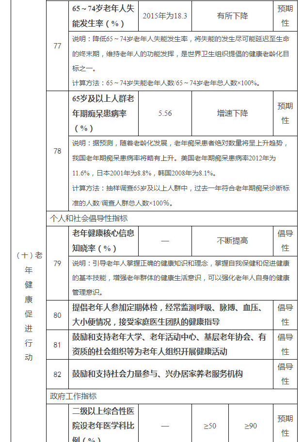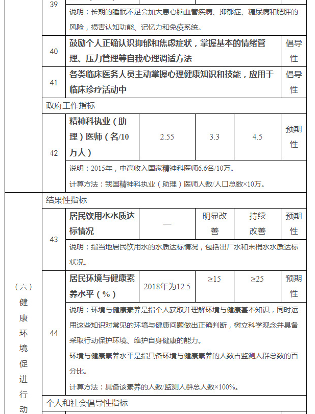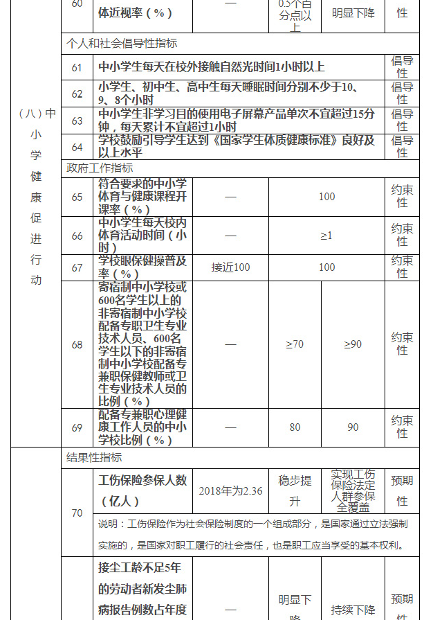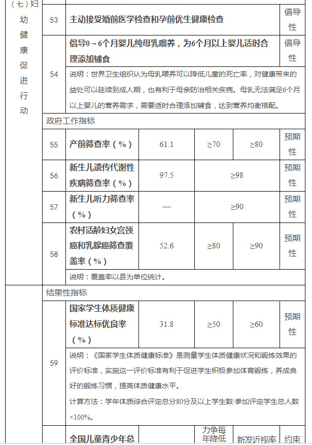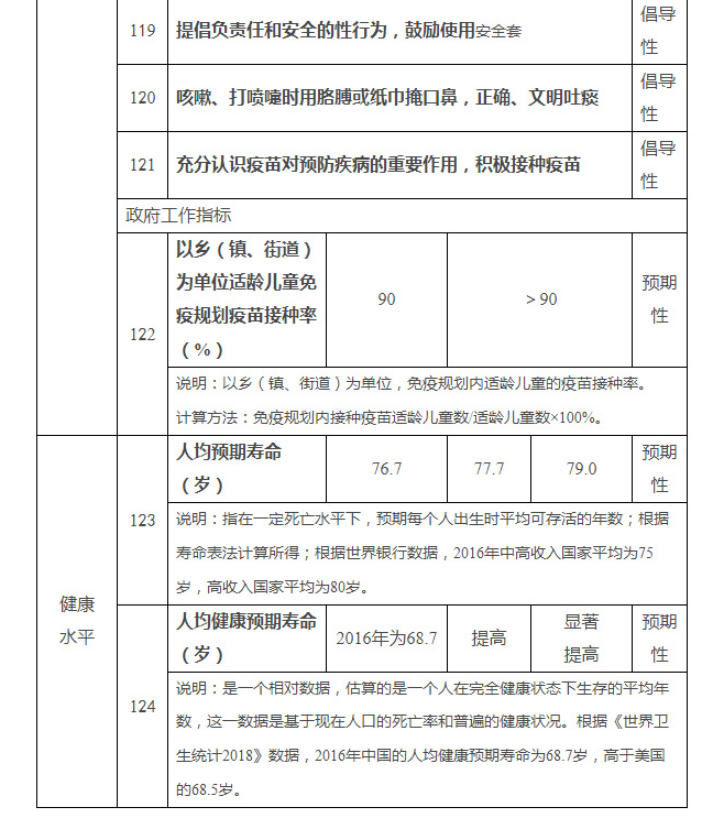 健康中国行动主要指标