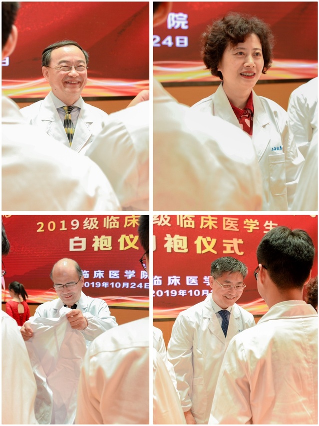 黄钢校长最后发表了重要讲话。他首先对今天穿上白袍的302名临床医学专业同学表示祝贺。他从“上健医人”的担当与责任、目前医患关系的情况、医学人文精神的本质和内涵、白袍仪式的意义等四个方面,说明白袍不仅是一种显性的责任,更是一种无穷的动力和终身需要追求的使命。穿上白袍意味着翻开了医学职业生涯的第一页,意味着“健康所系、性命相托”献身医学的人生正式起航,意味着从此扛起一个“上健医人”的担当与责任。选择了医学,就选择了温度、情怀和责任。选择了上健医,就选择了坚守、奉献和奋斗。希望同学们“莫失学医的初心、莫忘医者的使命、莫忘今天的承诺”,珍惜今天的时光,不负白袍荣光,为推进健康中国战略,推进国家医药卫生事业发展和人类身心健康,积极贡献力量,努力成为人民满意的、有温度的健康“守门人”!