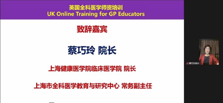 9月19日,中英全科医学专家聚集云端,迎来了“英国全科医学师资培训项目”的再次开启。北京华通国康公益基金会陈冉理事长,英国皇家全科医师学院Nigel Mathers教授,我校临床医学院蔡巧玲院长、产学合作处张苏华处长以及所有参加培训的学员一同参加了开班仪式。