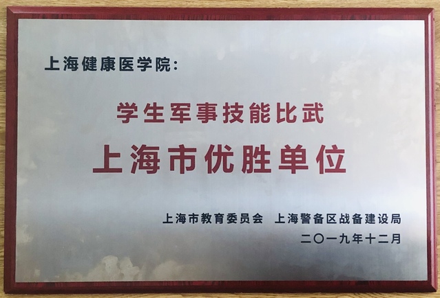 为深入学习贯彻习近平新时代中国特色社会主义思想和强军思想,提升大学生国防意识和军事素养,推动高校学生国防教育工作协调发展。12月15日,由上海市教育委员会、上海警备区战备建设局主办、上海海关学院承办的上海市学生军事技能展示活动中,我校临床医学院选手表现突出,代表学校获得了上海市学生军事技能比武“上海市优胜单位”荣誉称号。