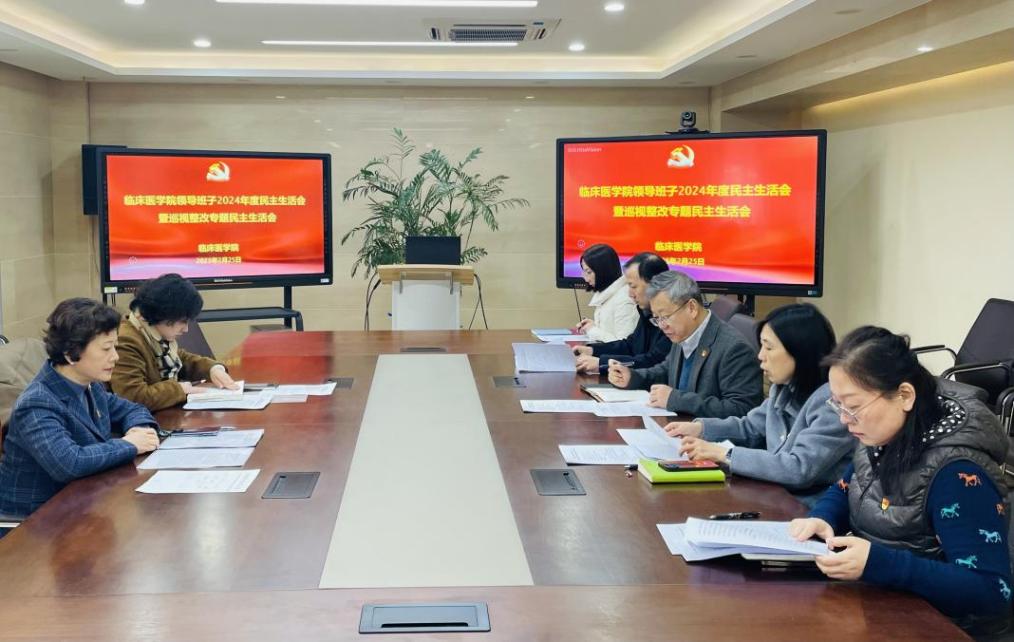 2月25日下午,临床医学院党总支在北苑7号楼411会议室召开党员领导班子2024年度民主生活会暨巡视整改专题民主生活会。校党委副书记、副校长 唐红梅,党委组织部副部长詹浩玲到会指导,学院领导班子成员、组织员参加会议,党总支副书记程伟主持会议。