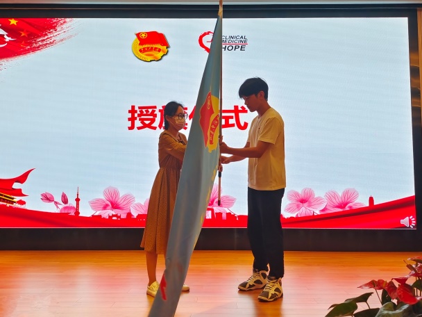 院团总支书记高旻杰老师庄重地将旗帜交到大骨班的学生代表严涵天同学手中。旗帜就是方向,旗帜就是力量,接过旗帜便意味着责任和使命的传承,它将让我们变得更强、更勇敢、更不畏艰难。临床医学院党总支副书记罗瑾琰老师指出,大骨班致力于提高学生干部的综合能力、发展学生干部的综合素质、加强大学生骨干理想信念教育、牢固夯实大学生骨干思想堡垒。