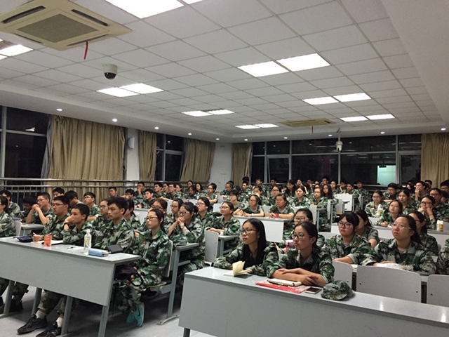 晚上,同学们的热情不减,配合着悠扬的歌声,同学们积极地配合着教官的复习训练,整个操场气氛十分热情,仿佛迎接着明天的曙光……