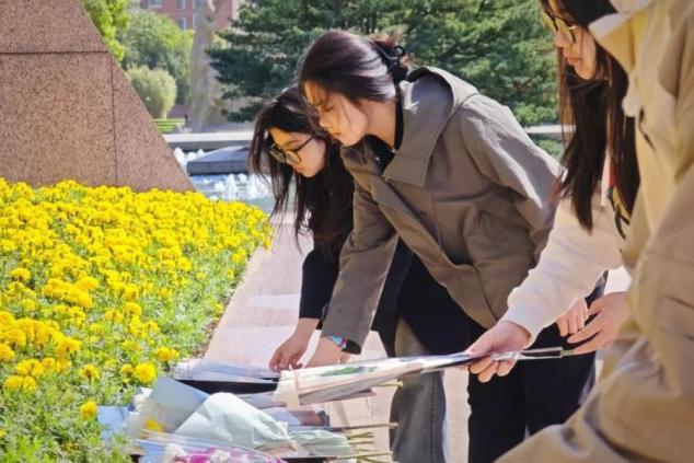 本次活动在庄严肃穆的氛围中开始,临床医学院师生手捧菊花来到烈士纪念碑前,垂首默立的哀悼后一一上前敬献鲜花,再次向伟大的革命烈士表示深刻的追思。黄白相间的菊花代表了无穷无尽的思念,也寄托了对革命先烈的感激。俯身整理花束,指尖轻触冰凉的纪念碑石,那一刻,沉默胜过千言万语——青山松柏间,长眠着一群无比可爱的人,后辈们只能以最朴素的方式,向英雄们诉说后辈的敬仰。