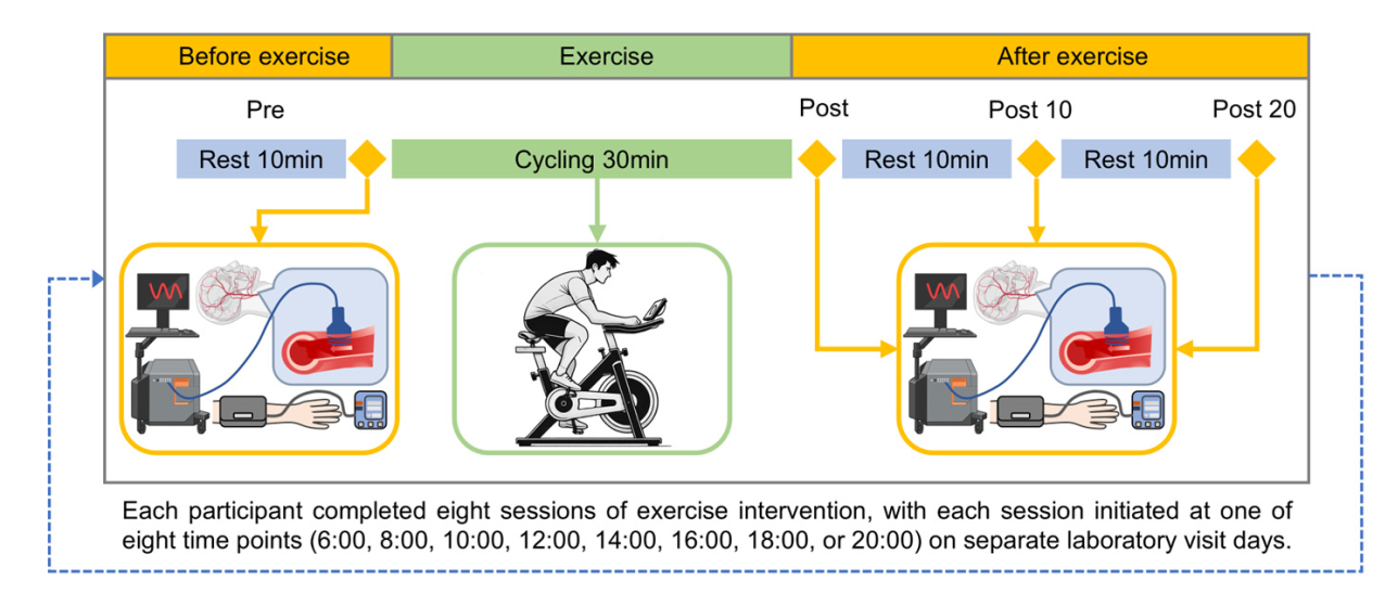 而《Biology》的研究则选取 22 名久坐成年男性,分别在从 06:00 到 20:00 八个均匀分布的时间点进行 30 分钟中等强度有氧运动干预。结果显示,与其它时间点相比,06:00 和 18:00 运动能诱发更显著且持续的平均血流率和壁面切应力增加。06:00 运动还伴随振动切变指数增幅较小以及外周阻力降幅较大。该研究深入探究了一天中不同时间运动对久坐者血管健康的独特影响,其成果为维护血管健康提供了有力依据,尤其强调了 06:00 和 18:00 这两个时间点的运动益处。
