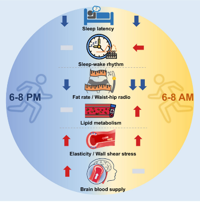 综合两项研究的结果,我们可以看到运动时间的选择对于不同的健康益处具有显著影响。对于久坐人群而言,选择合适的时间进行运动,能够更有效地改善身体成分、睡眠质量和心血管功能。这些发现不仅丰富了我们对运动与健康关系的理解,也为制定更具针对性的运动处方提供了科学支持,有助于提高运动干预的效果,促进整体健康水平的提升。