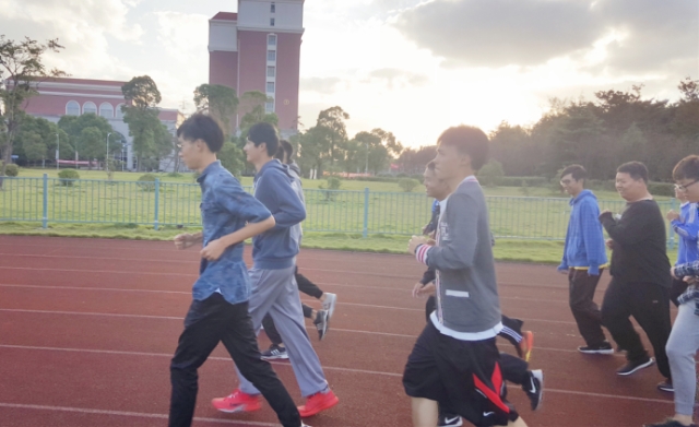 2016年10月10日星期一,早上6点15分,上海健康医学院临床医学院(院前急救)2016级的各位新生在半军事化管理的前提下开始了第一次的晨跑训练。全班50名男生都从思想上高度重视、端正态度,行动上以一个军人的标准要求自己,积极参与,目标是像军人一样生活、像军人一样思考、像军人一样训练,在艰苦的训练中磨炼自己,提高自己,使自己终身受益!同时也是提高自身综合素质,为了能够更好地在将来岗位上胜任,需要不断地锻炼自我素养,只为了能更全心全意地为人民服务。