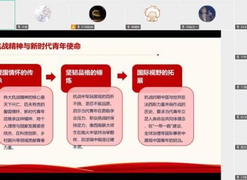 本次团日活动通过“历史-现实-未来”的逻辑链条,将理论阐释与情感共鸣相结合,既回溯抗战峥嵘岁月,又立足新时代使命担当,引导团员青年们在历史与现实的对话中坚定“四个自信”,在国际比较中厚植家国情怀。