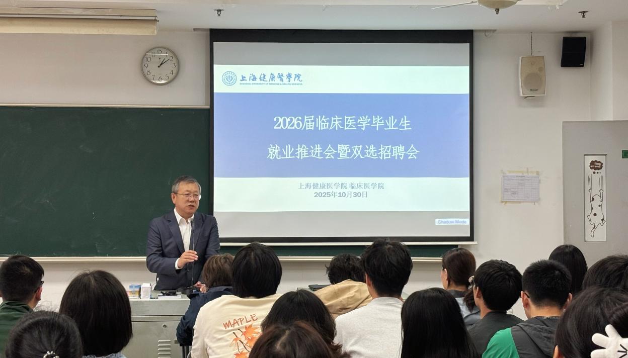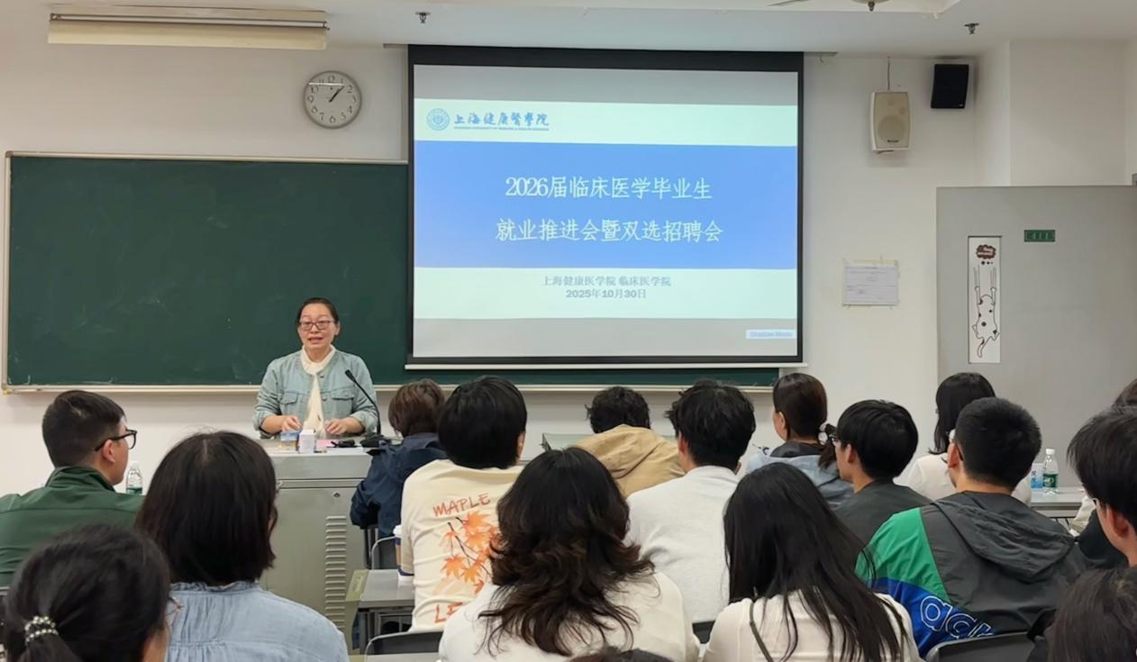 为深入贯彻上海市关于高校毕业生就业工作的政策部署,落实上海健康医学院关于促进毕业生高质量充分就业的相关要求,10月30日下午,临床医学院在北苑2号楼411室举办“2026届临床医学毕业生就业推进会暨双选招聘会”。瑞金医院、仁济医院、华山医院、附属公利医院、瑞金医院卢湾分院等全科基地主任和人力资源部负责人应邀出席;临床医学院院长曲毅、党总支副书记张燕、就业专员、辅导员代表及2026届毕业生60余人参会。