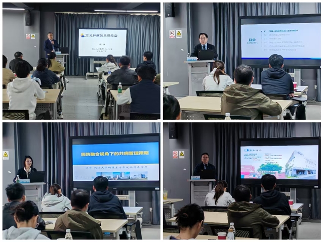 课程安排紧凑充实,为期两天的培训共设置十个专题讲座和小组讨论。复旦大学附属中山医院潘志刚教授以《社区常见肿瘤筛查实践》为题,深入解析基层肿瘤防控策略;上海交通大学医学院附属仁济医院方宁远教授就《2024<中国高血压防治指南>解读》进行深入讲授,为基层医务人员提供高血压规范化管理的新思路;同济大学附属东方医院江华教授围绕《医防融合视角下的共病管理策略》,系统阐述慢性病多病共管模式在社区实践中的应用路径;上海市浦东新区上钢社区卫生服务中心杜兆辉主任以《社区慢病创新管理平台的设计与运用》为题,介绍基层在数字化慢病管理方面的创新实践;附属周浦医院沈艺教授讲授《高脂血症的社区管理》,分享社区慢病防治的最新经验;临床医学院曲毅院长作《老年血管老化的评估和社区管理策略》专题讲座,探讨老年群体血管健康与慢病预防的有效结合;同济大学李觉教授就《社区临床实践中科研问题的提出》进行授课,引导学员结合实际工作发现研究切入点;上海健康医学院赵苗苗教授和杨永亮教授分别讲解《临床研究设计及统计分析》和《AI技术驱动的疾病防控及治疗策略研究》,为学员拓展科研思维提供新视角。