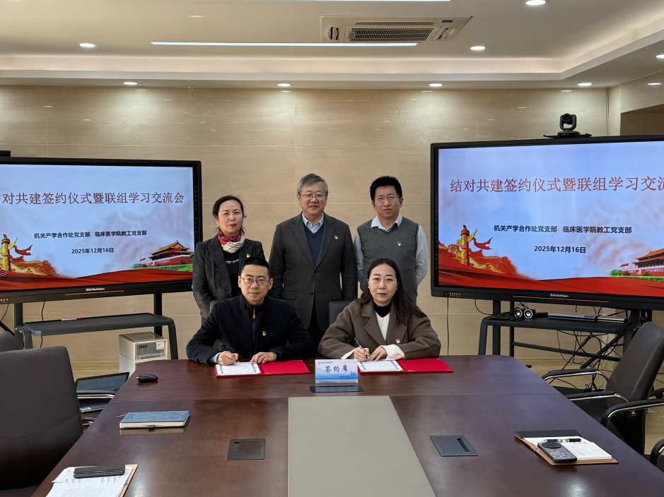 2025年12月16日中午,我院教工党支部与机关产学合作处党支部结对共建签约仪式暨联组学习交流会北苑7号楼411会议室举行。