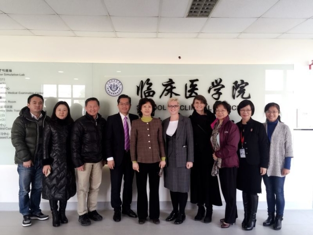 12月15日,上海和睦家医院院长Heather Smith、全科主任Dr.Sarai Nietvelt、急诊科主任Dr.Joseph Chang等一行六人至临床学院访问交流、洽谈合作。唐红梅副校长、教务处张梅处长、我院蔡巧玲院长、学校职能部门及临床医学院教师们参加了会谈。