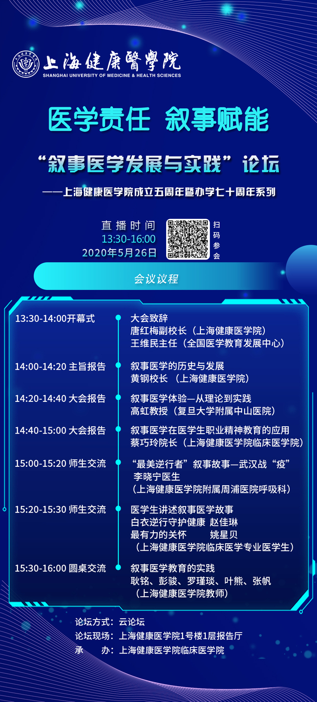 本次论坛,以“医学责任,叙事赋能”为主题,通过大会报告、师生故事分享以及专家讨论,研讨交流叙事医学的发展与研究、新冠病毒肺炎防控的责任担当、以及叙事医学教育的前景,希望为职业人文精神和职业素养教育探寻更加有效的方法和途径。