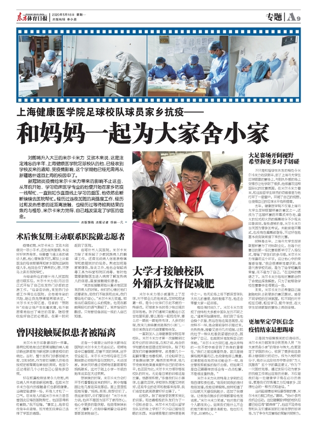 对即将升入大三的米尔卡米力·艾孜木来说,这是注定难忘的半年,上海健康医学院足球校队的他,已经收到学校发来的通知,受疫情影响,这个学期他已经无需再从新疆喀什返回上海的校园中了。