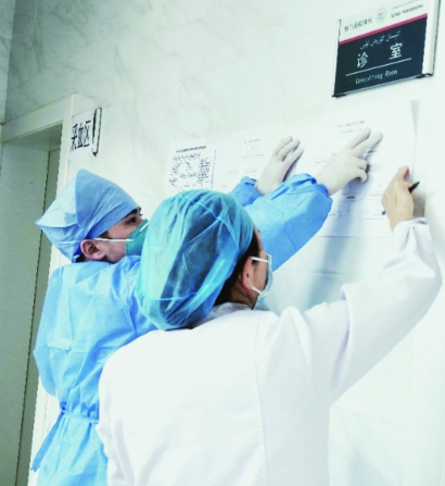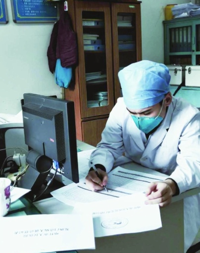 在喀什市人民医院,米尔卡米力除承担起了少数民族病人的翻译工作,还得完成病人信息表格填写和数据统计的任务,熬夜加班是家常便饭。除此之外,他也会背起消毒工具为科室和院区消毒,有时他需要跟随医生进入病房了解发热病人的信息,直接接触疑似患者。