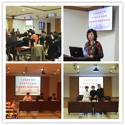 为切实落实临床医学专业人才培养方案,在早期接触临床、临床见习、临床实习和全科医学社区健康促进等方面开展合作,共同促进全科医学事业的发展。由教务处牵头,临床医学院与附属嘉定区中心医院承办,于2017年1月11日(周三)9:30在附属嘉定区中心医院召开“上海健康医学院全科医学学系建设暨联盟教学基地签约会议”,进一步推进临床医学院社区联盟教学基地的建设。学校出席人员包括黄钢校长、唐红梅副校长、教务处张梅处长、临床医学院蔡巧玲院长、秦建晔副书记、校职能部门以及临床医学院相关人员等。邀请的嘉宾有上海市卫计委周蓉主任、嘉定区卫计委领导、嘉定区中心医院党委书记、全科学系教学骨干。
