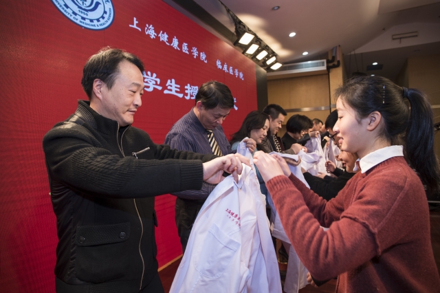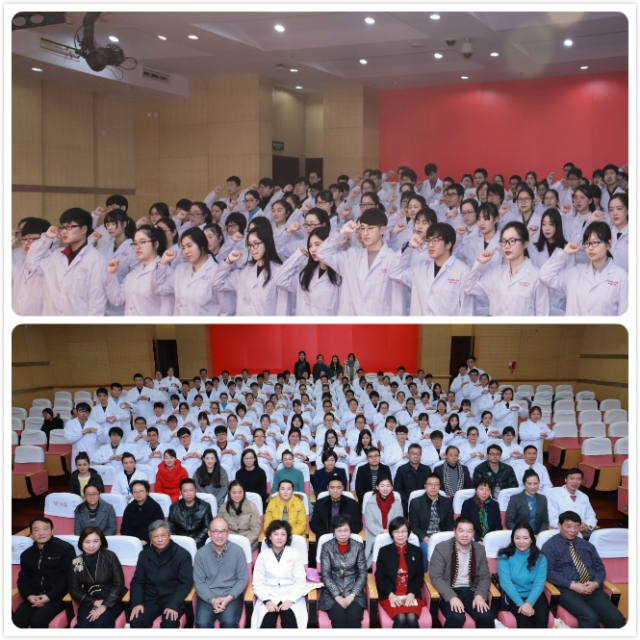 1月13日,我校临床医学院2016级临床本科白袍仪式在医学院报告厅顺利举行。副校长曹蓉蓉、副校长唐红梅,临床医学院负责人、附属医院临床导师代表以及临床医学院全体教师出席了本次活动,为医学生们授袍,并见证了医学生宣誓的神圣时刻。