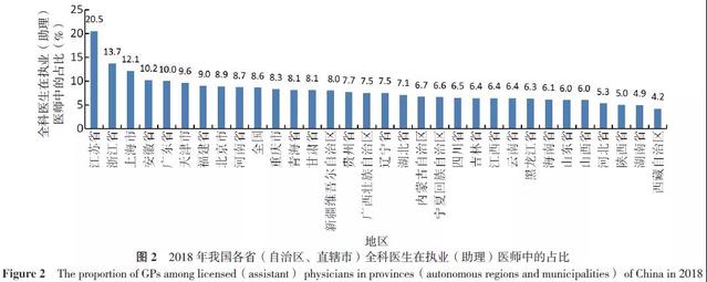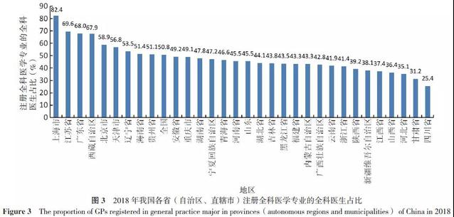 2018年全国注册全科医学专业的全科医生在全科医生总数中占比为50.8%,基层医疗卫生机构为52.4%。各地区情况见图3。
