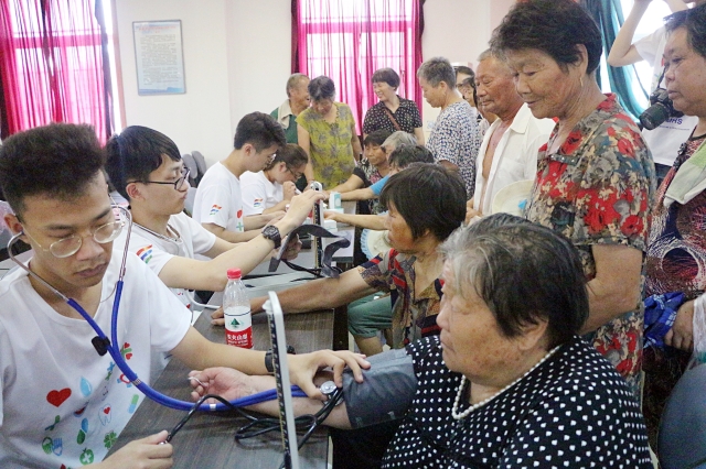 老年人健康意识薄弱,为此,同学们给老人们准备了有关于“三高”的健康知识宣讲,告诉他们如何控制三高、预防三高。我们采用方言进行宣讲,拉近了与老人之间的距离,也让老人们更加理解我们所讲的内容。除此之外,还为近200名老年人测量血压与血糖。儿童年纪小,我们准备了他们喜欢的兔博士人偶给他们开展暑期安全教育,得到小朋友们的喜爱,也大大提高了他们对安全急救知识学习的兴趣。与此同时,我们还将严肃的急救知识教学通过贴近实际生活且易于理解的生活情景剧形式进行呈现。为了将急救健康知识真真切切地传播给老人和孩子,我们还将基础急救健康知识编成朗朗上口的歌词,配上简单的舞蹈动作,形成一套易于老人儿童练习的健康急救操,采用广场舞的形式,将急救健康知识全部融入基层老百姓的生活中。