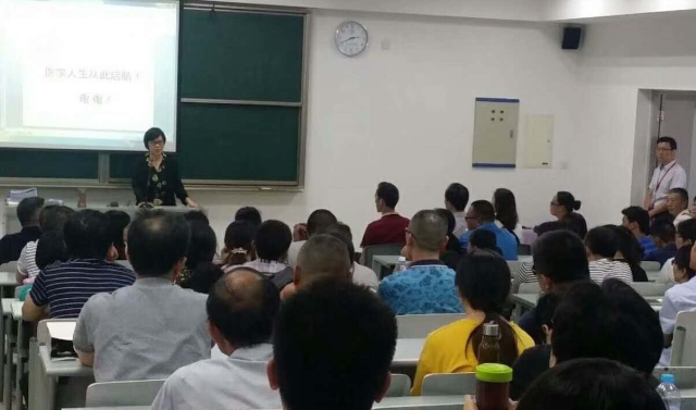 下午,秦啸龙副院长、杜望春老师和李晨蕾老师分别对2017级新生家长进行学院及专业情况宣讲。三位专业主任耐心向新生家长讲解了学院概况、今年录取情况及各专业的课程设置情况,使学生家长们对临床医学院和各专业有了深入的了解。蔡巧玲院长参加了临床医学本科专业的家长见面会,向家长们详细解读了培养计划和未来的职业发展。