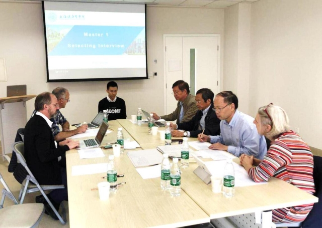 10月20日,秋高气爽,风和日丽,来自比利时列日大学的Pascal GUSTIN教授、Jean-MichelVandeweerd教授、Jean-François Nisolle教授、Annick DHEN女士到我校进行中-比项目Master 1阶段学生面试选拔,同时,上海交通大学医学院的张勇教授、陈桂林教授、丁文龙教授、张文慧教授也受邀参加。此次面试选拔是我校“中-比医学教育周”的第一项活动,参加该项目的是我校2016级临床医学本科专业和康复治疗学本科专业的21名同学。该批同学已在我校经过了一年时间的语言学习后,又于今年7月赴法国格勒诺布尔阿尔卑斯大学语言中心进行了一个月的法语深造,已通过初步的语言测试,具有较好的法语功底。通过本次面试选拔的同学将开始比利时列日大学Maser 1项目的医学科学硕士课程预科阶段的学习,这也是本次“中-比医学教育周” 的主要内容。
