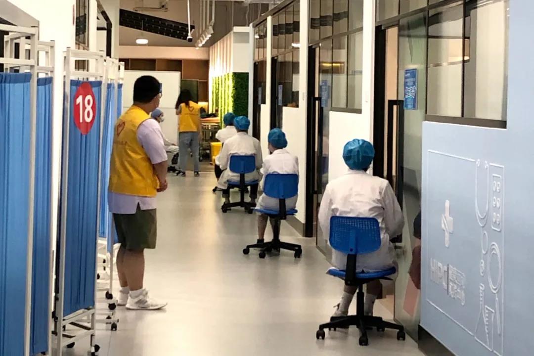 其中,标准化病人(Standardized patient, SP)是一些经过训练,旨在恒定、逼真地复制真实临床情况的人。他们既可模拟病人,也可对考生的技能进行记录并加以评估。SP志愿者们,在考前接受了专业老师为期三天的线下培训,学习如何更好地将自己代入到病人的角色中,以成为一名合格的标准化病人,为考生营造一个更为真实的问诊环境。他们不断模拟,不断熟练,了解标准化病人的表演技巧,并熟练运用对病例的解读技巧,从形似到神似,再到进入考站承担本次考试中问诊及体格检查的表演任务。