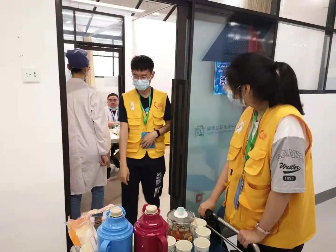 正式开考后,引导的志愿者带领考生有序进场,成了来往于考场和候考室的“摆渡人”;考务的同学将考生的评分表第一时间送到考务室,保障考试的有序进行;病史采集SP的志愿者在考场内配合考生的问诊;后勤的志愿者全方位为考官、考务老师们服务;打包的志愿者在考生操作结束后迅速整理物品,等待下一位考生进场;机动的志愿者随时待命,准备应对紧急情况。所有的志愿者各司其职,考试有条不紊地进行。