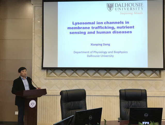 4月9日下午,加拿大Dalhousie大学医学院生理学与生物物理学系董先平教授应邀来到我校进行学术交流,在北苑1号楼110会议室为我校教师做题为“Lysosomal Ca2+ channels in membrane trafficking, nutrient sensing and human diseases”的学术报告,报告由临床医学院副院长黄鹏主持。