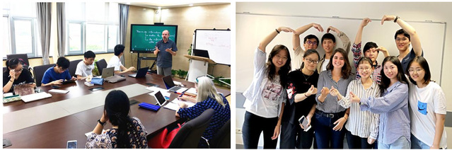 比利时教授中比周为学生授课授课;游学学生与外教合影