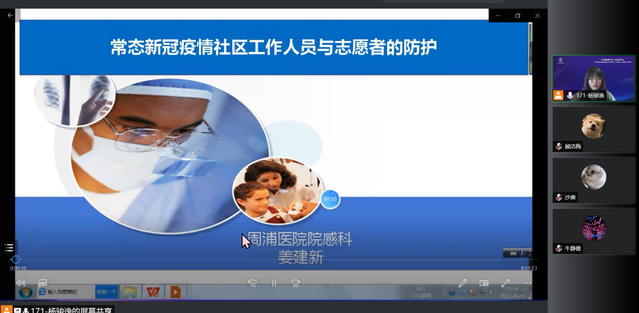 最后,来自附属周浦医院的姜建新教授更细致分析了科学化疫情防护重点的实践应用。姜建新教授从方案重点、人员分工、新型冠状病毒传播途径、社区新冠疫情防护要点四个角度展开了讲解。