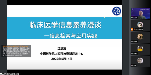 来自中国科学院上海科技查新咨询中心的江洪波博士为同学们带来了临床医学信息素养漫谈。江洪波博士主要从信息素养概述、临床医学信息来源、临床医学信息获取以及临床医学信息评估四个方面向同学们讲授了有关临床医学信息素养的知识。