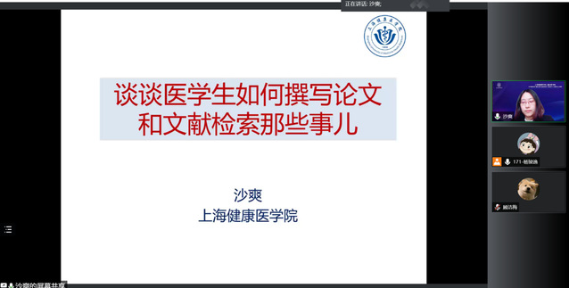 来自上海健康医学院协同科研中心的沙爽博士交流了医学生如何撰写论文和文献检索那些事。沙爽博士分别从撰写医学论文的意义、医学论文的特点、医学论文的选题和分类四个方面并且结合案例细致讲解了如何撰写综述、研究型论文和病历报告,以及如何进行文件检索。