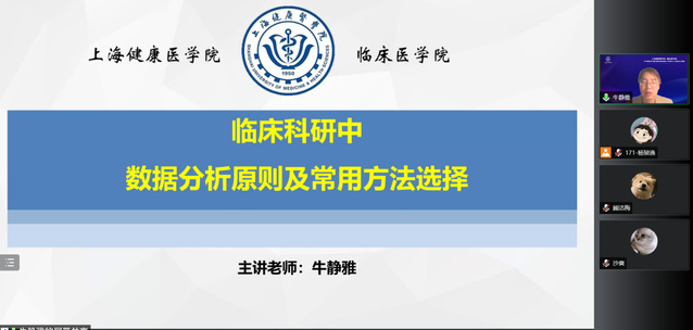 来自上海健康医学院的牛静雅博士为同学们展示了创新能力培训-数据分析的应用。牛静雅博士从数据分析有什么用、数据分析的前提和原则有哪些、怎样选择合适的数据分析方法以及科研论文中常见的数据分析问题四个方面详细讲解。