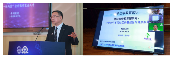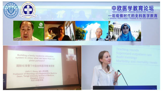 交流研讨中,国外专家教授分别就欧洲全科医学人才培养体系、流行病引发的欧洲普通内科培训与实践的转变、疫情发展情况及全科实践的经验教训等内容进行了介绍。同济大学医学院院长郑加麟教授阐述了国际化背景下中国全科医学教育的探索。