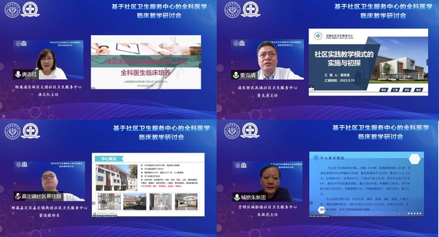 交流分享环节由我院社区教学负责人李晨蕾老师主持。附属浦东新区大团社区卫生服务中心唐志红主任、崇明区城桥镇社区卫生服务中心朱新忠主任、浦东新区泥城社区卫生服务中心董克清副主任、附属嘉定区嘉定镇街道社区卫生服务中心医教科翟佳燚科长分别结合本社区卫生服务中心情况,分享社区实践教学模式的探索,交流全科人才社区实践的经验,并表示将协力打造高质量教学平台,培养高素质卫生人才。